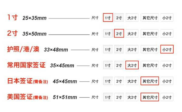 標準寸照(1寸照片大?。?.5cm*3.5cm;2寸照片大?。?.5cm * 5.3cm;小2寸照片大小:3.2cm *4.0cm;)