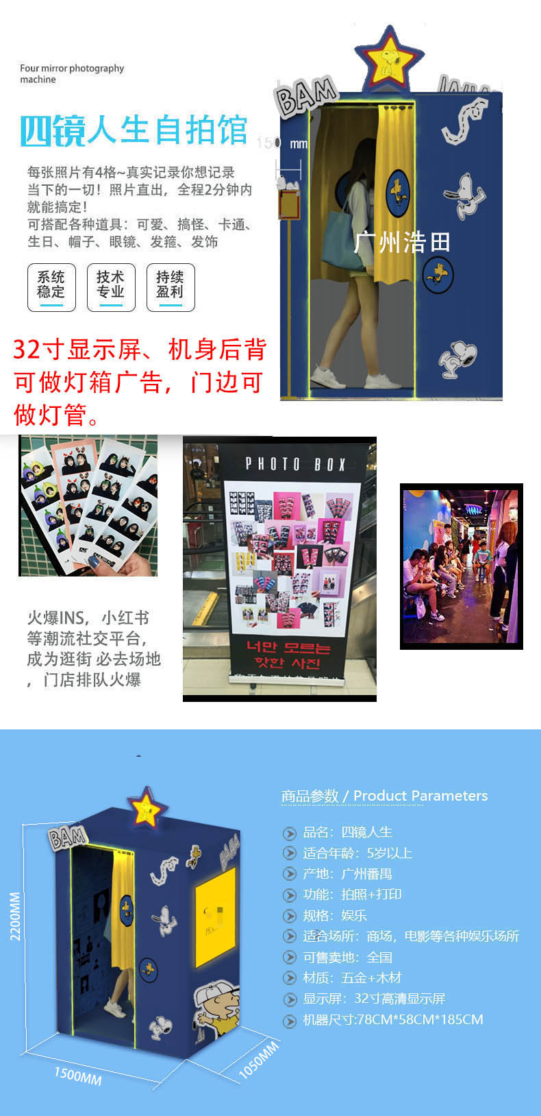 產品特點:32寸顯示屏、機身后背可做燈箱廣告,門邊可做燈管。