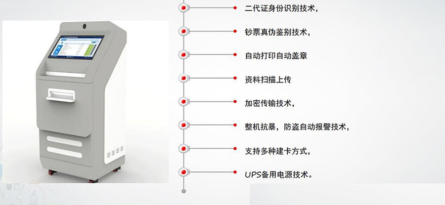 硬件組態:雙目防欺詐攝像頭、電源盒遠程控制、主機柜、工控機、條形屏、補光燈、視覺相機、打證書模塊主體、針式打印機、