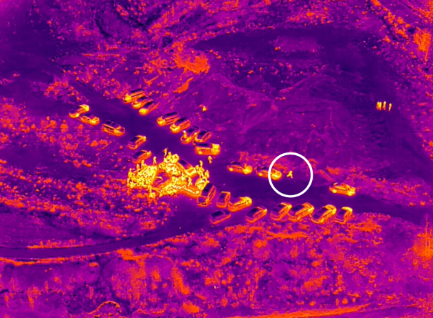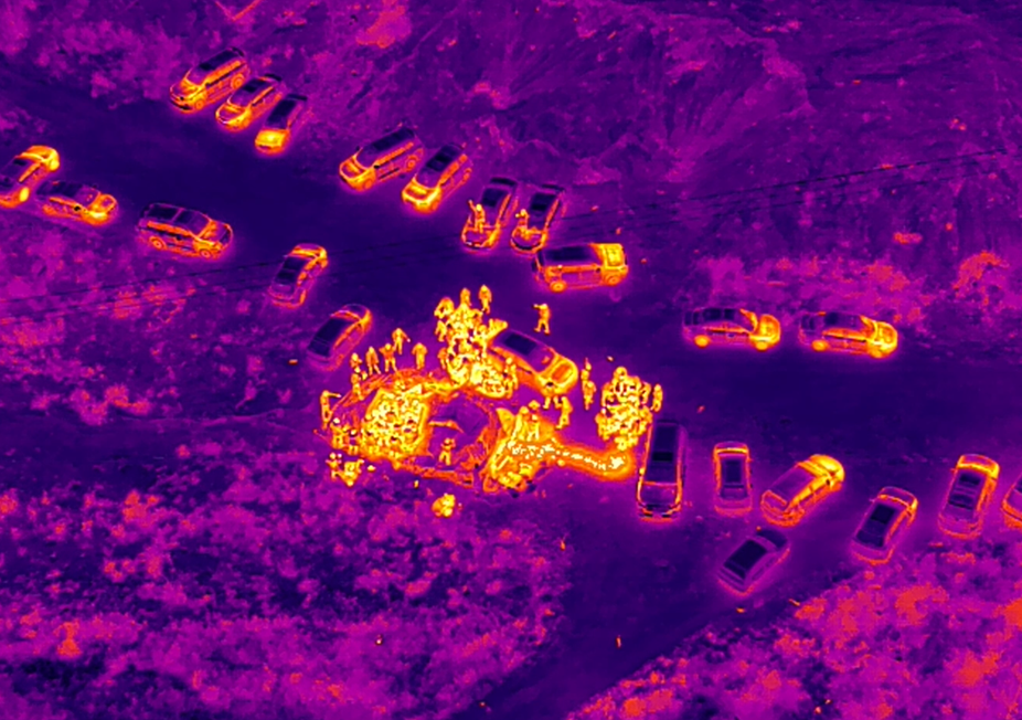 面對(duì)偵查和抓捕困境,辦案人員擴(kuò)展了偵查思路,在前期摸排中,利用經(jīng)緯 M300 RTK無人機(jī)隱蔽性強(qiáng)、高機(jī)動(dòng)性等優(yōu)勢(shì),對(duì)該區(qū)域進(jìn)行凌空偵查。借助無人機(jī)搭載的禪思 H20T多功能負(fù)載,開啟高清紅外模式,夜色下涉賭人員的分布及位置信息清晰可見。