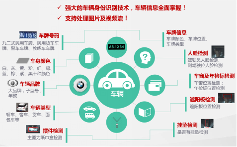 - 支持識(shí)別車牌、車牌顏色、車身顏色、車標(biāo)、車型、車輛通過(guò)時(shí)間、通過(guò)地點(diǎn)、車內(nèi)乘客面部圖像等信息