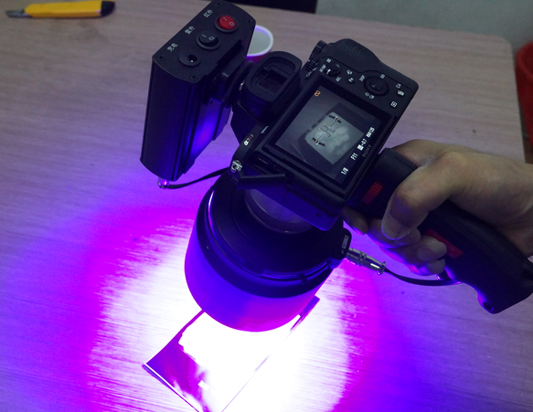 4.★便攜式定向反射脫影照相裝置:便攜的光源一體暗室設(shè)計,不受外界光的干擾;直接安裝在主機(jī)鏡頭前段,進(jìn)行痕跡采證。對復(fù)雜背景界面上的遺留指紋痕跡可非常簡易快捷地采證痕跡脫影圖像。功率為16w,光譜范圍為:365nm, 光源源壽命≥50000h,光源形式:勻光面光源。光源角度90°反射,同時針對不平整界面時反射鏡可作±5度的微調(diào),確保照相光軸與痕跡界面的垂直定向。
