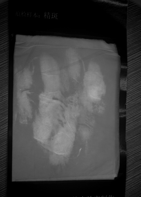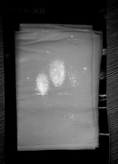 唾液斑熒光痕跡